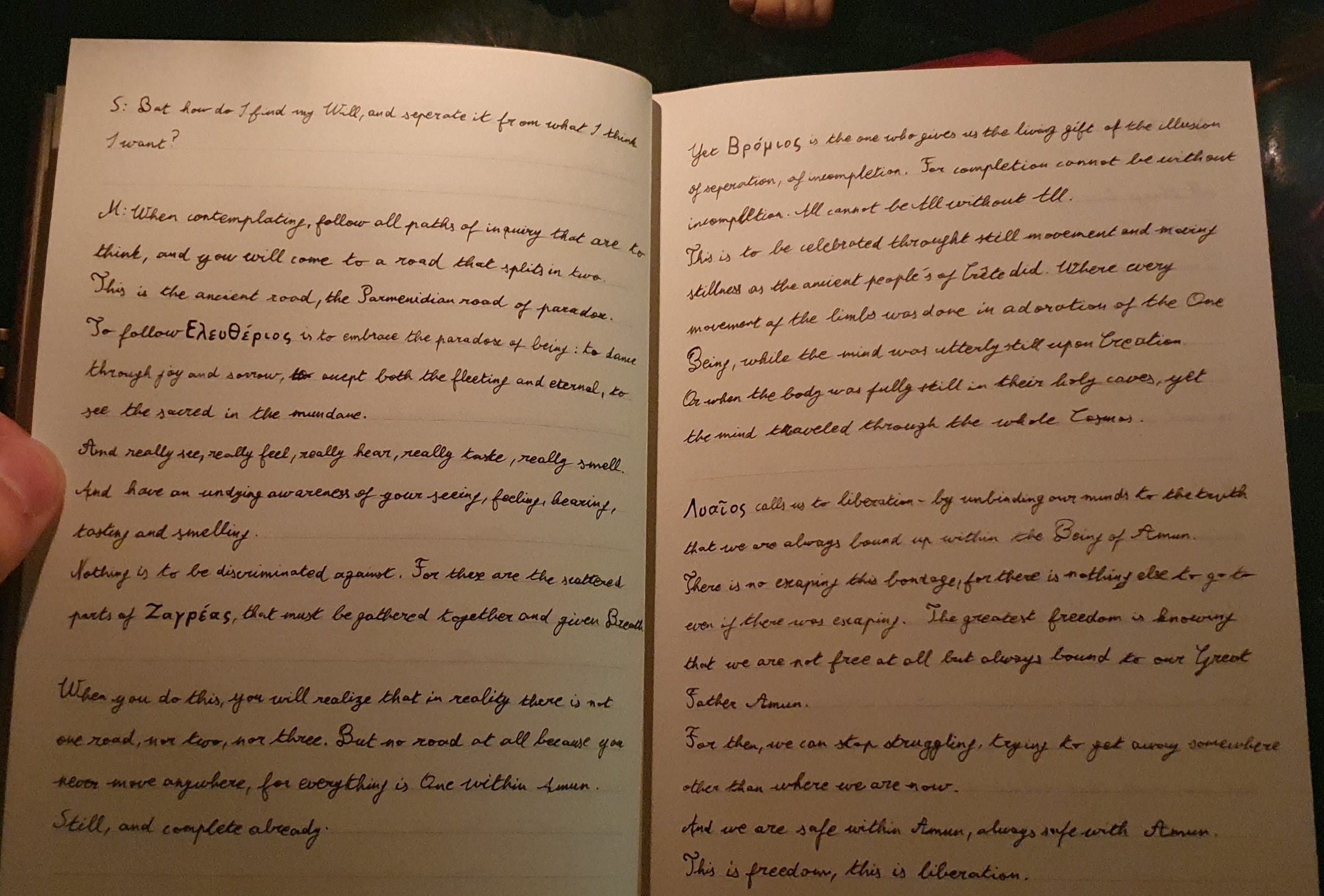 I take alot of inspiration from different texts of the Corpus Hermeticum, especially the second one “To Asclepius” that I pretty much directly quote several times at the beginning of my text.