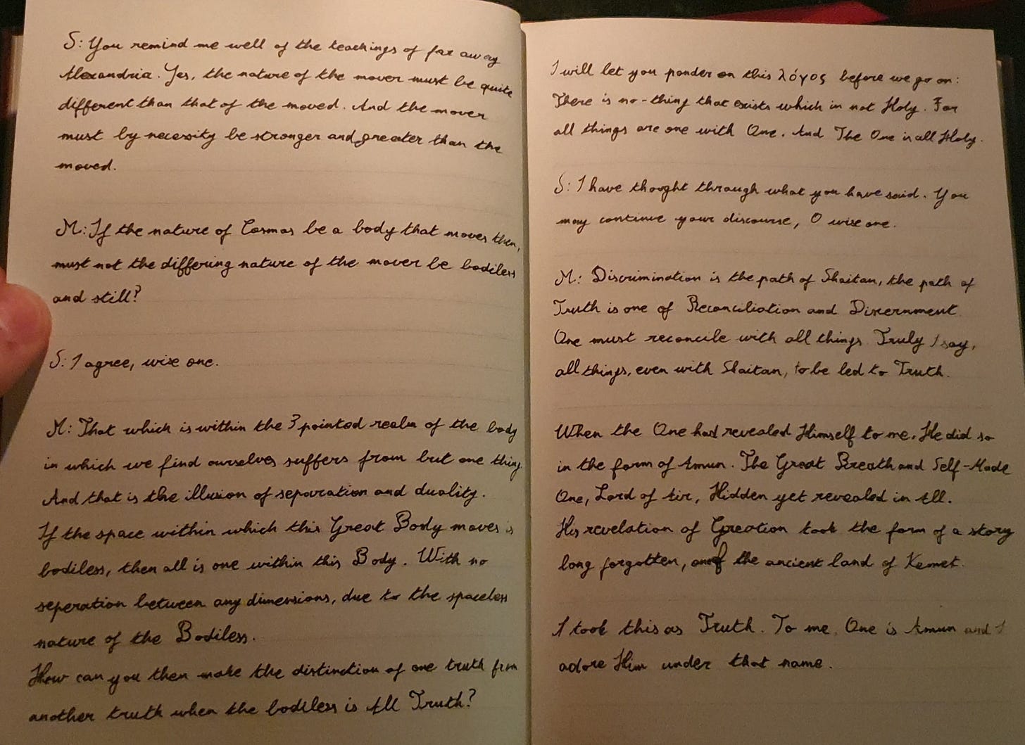 When the One had revealed Himself to me, He did so in the form of Amun. The Great Breath and Self-Made One, Lord of Air, Hidden yet Revealed in All. His Revelation of Creation took the form of a story long forgotten, one of the ancient land of Kemet.12