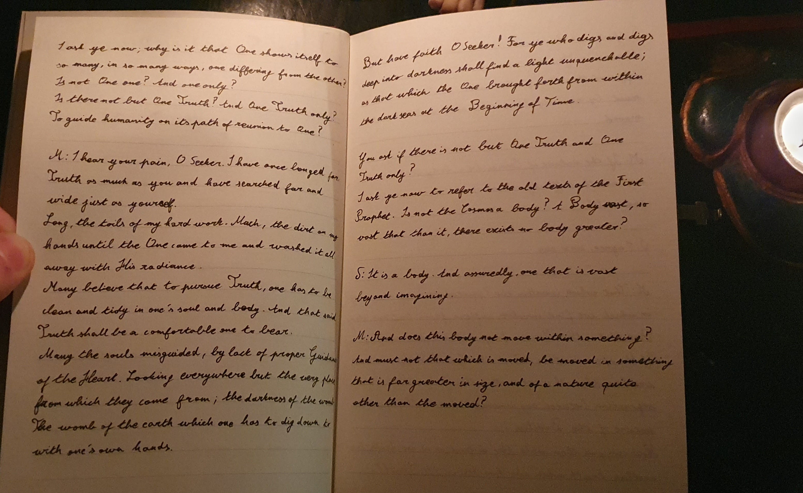 It is the same here. In this second text, we have a Master of Wisdom, a sort of highest teacher character within a group or occult order. We then have a Seeker who has been a student within this group looking deeply for answers where no other of the students have ventured yet, and so as a reward he gets to talk to the Master to learn the deepest mysteries of the order.